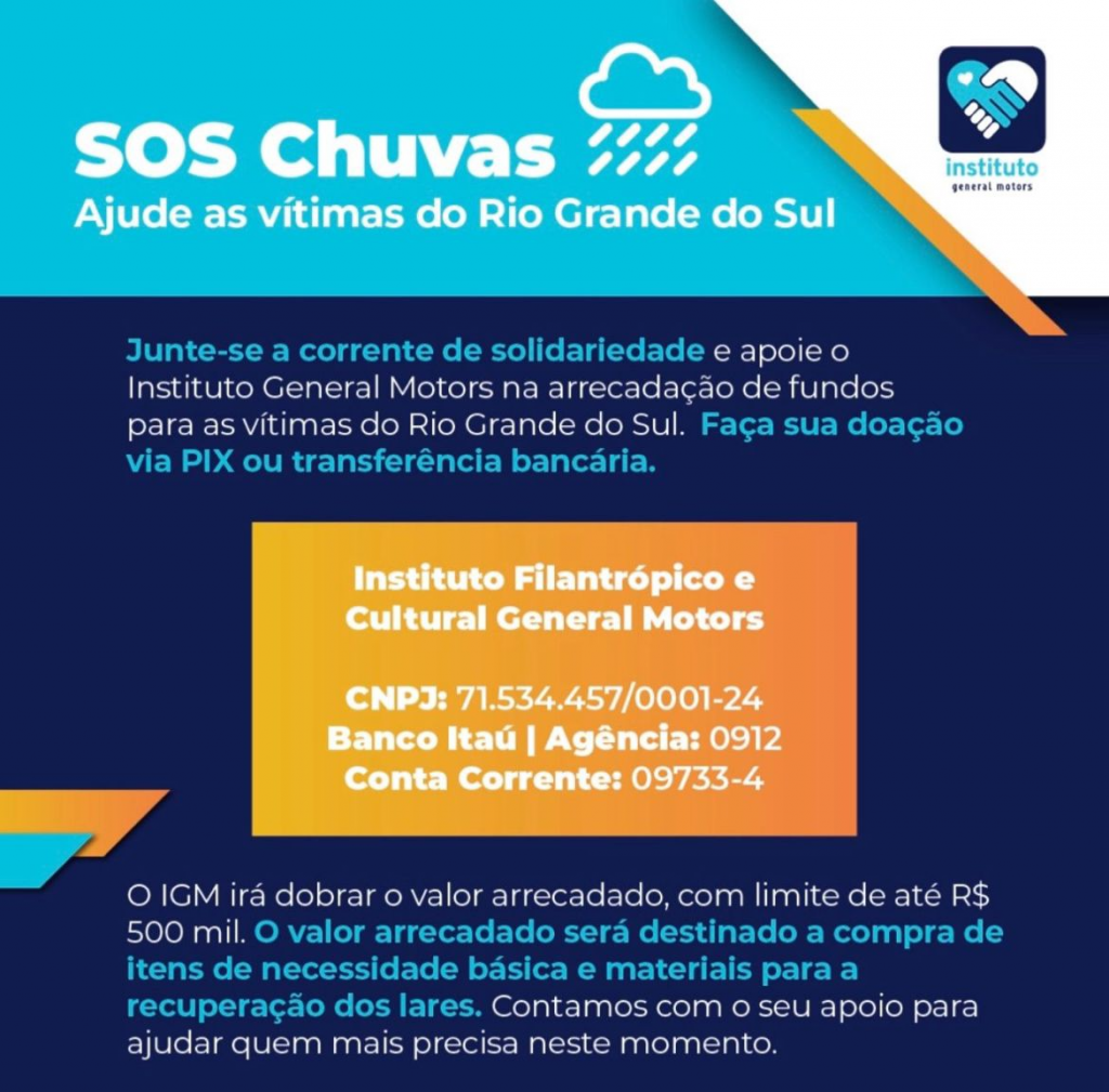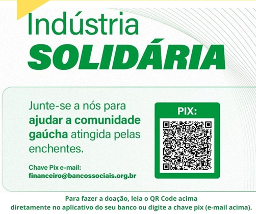 A Mercedes-Benz e vocês também podem doar através do PIX da Fundação Gaúcha de Banco Sociais, uma instituição séria, aditável e apoiada pela Federação das Indústrias do Estado do Rio Grande do Sul e pelos Sindicatos Industriais.
