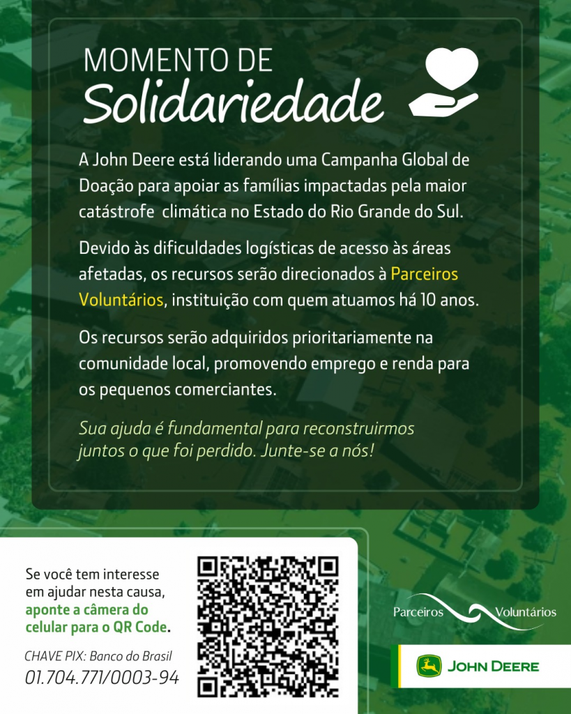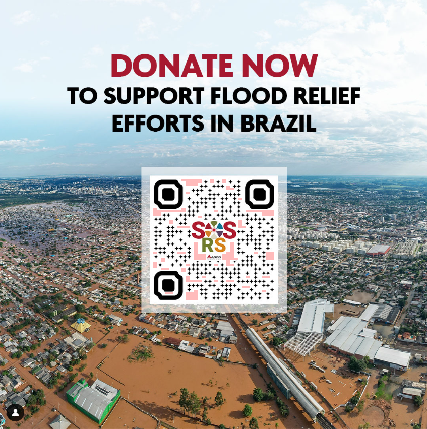 O Fundo SOS RS para Enchentes no Brasil, criado pela AGCO Agriculture Foundation em parceria com a BrazilFoundation, está recebendo doações dos funcionários, revendedores, parceiros e amigos da AGCO.