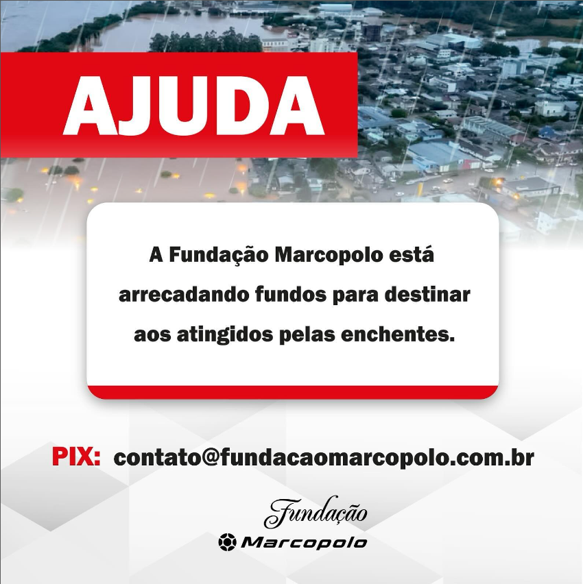 A Fundação Marcopolo está arrecadando fundos para destinar às pessoas afetadas pelas enchentes.