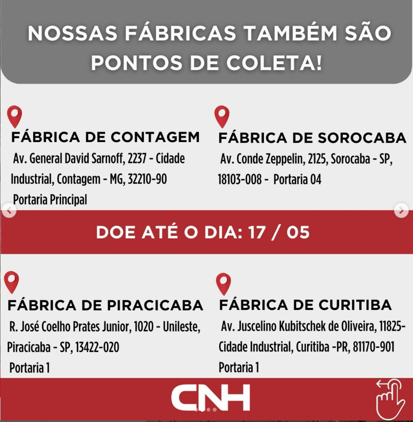 Além do PIX da Cruz Vermelha, também estamos recebendo doações em nossas fábricas.